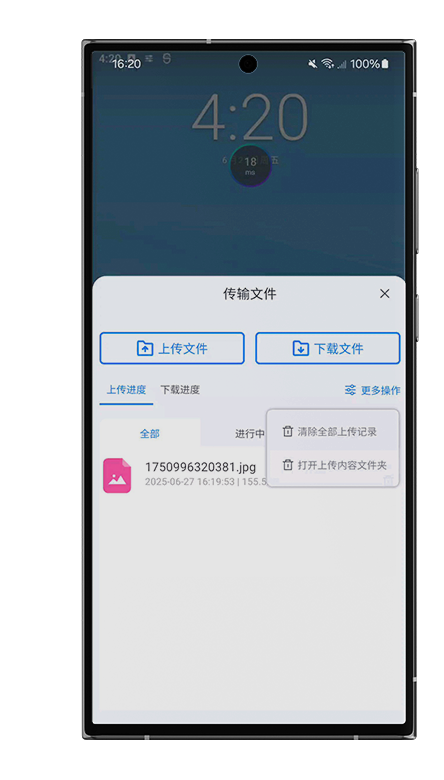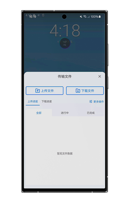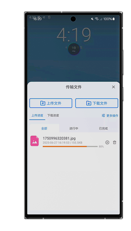 授权完成后,上传所选的文件,即可在面板上看到传输进度。